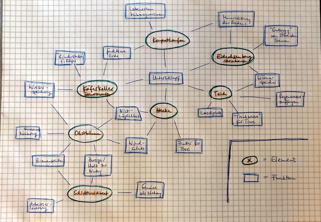 In der Permakultur (dem Konzept zur Gestaltung lebendiger Systeme, nach welchem wir arbeiten) gibt es die wichtige Unterscheidung zwischen Element und Funktion.